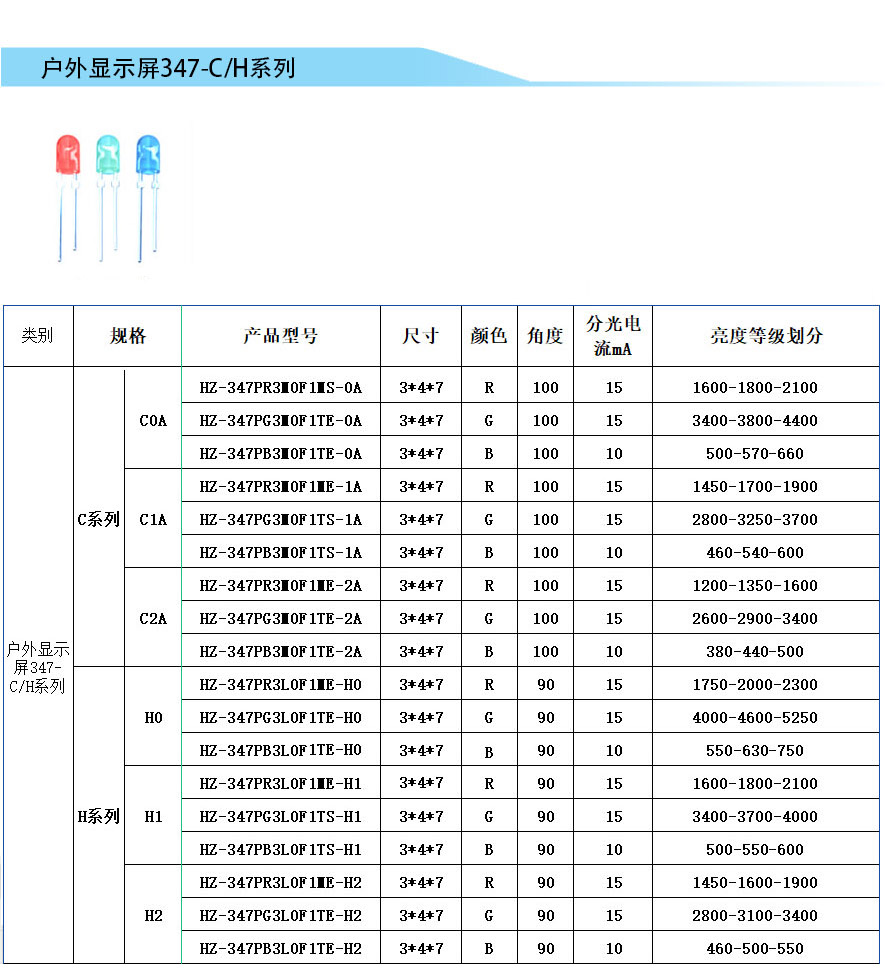 直插交通屏3mm、5mm、347-A/X系列